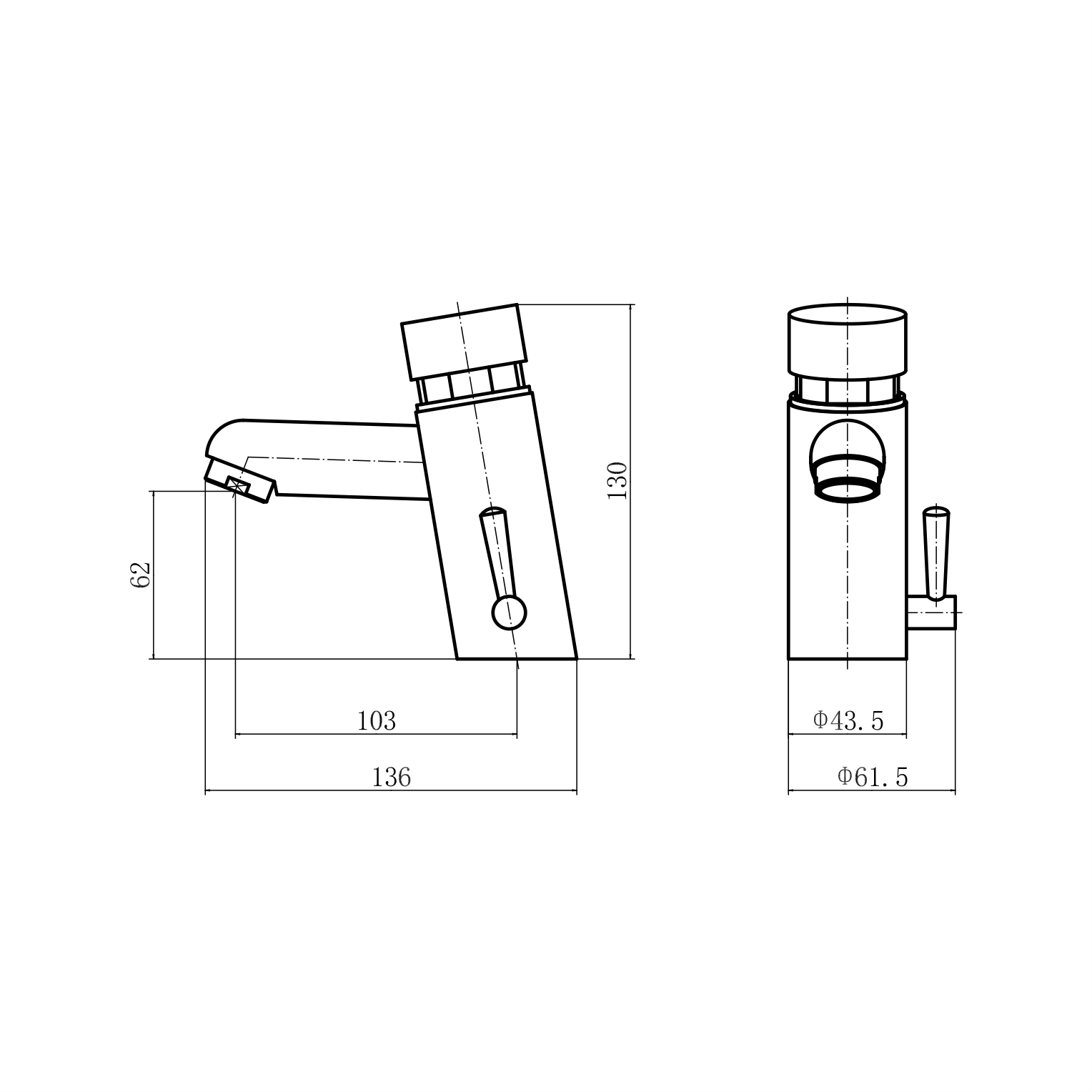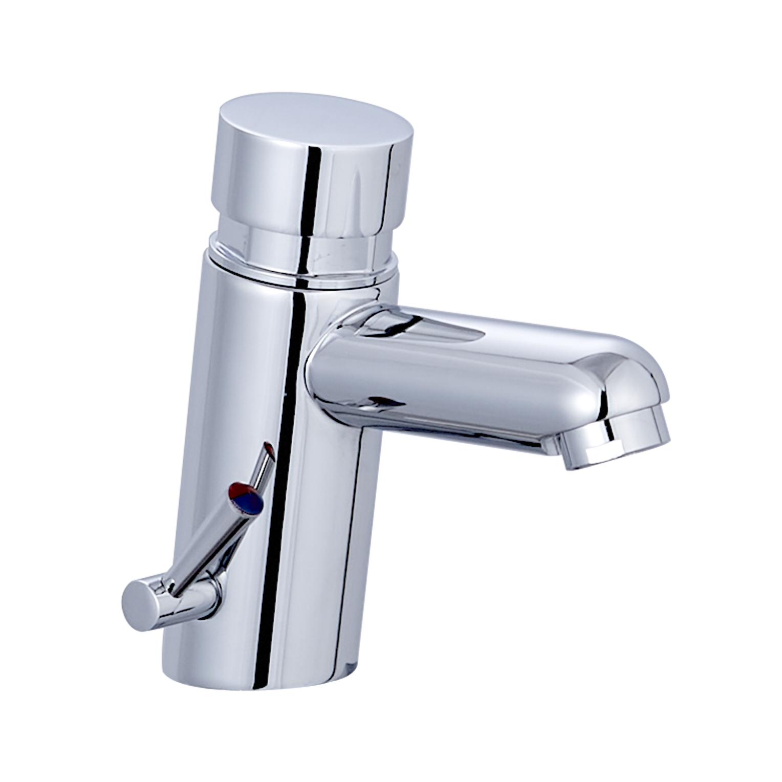 смеситель нажимной/порционный для умывальника с ручной регулировкой температуры воды, H=130 мм