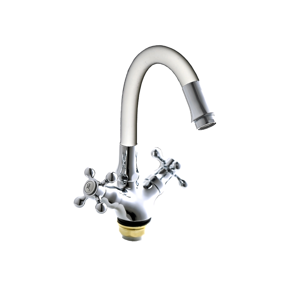 Смеситель для раковины Fashun с гибким изливом хром/белый (A4419-B7266)