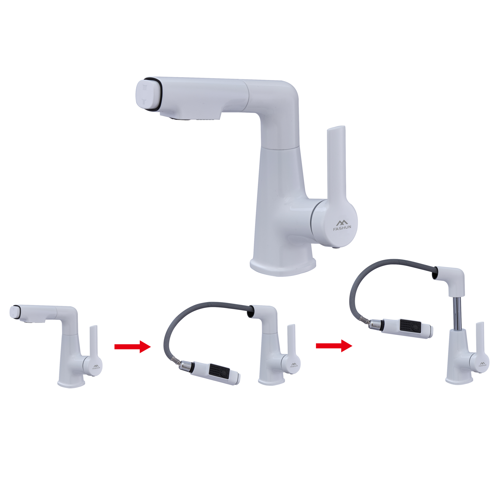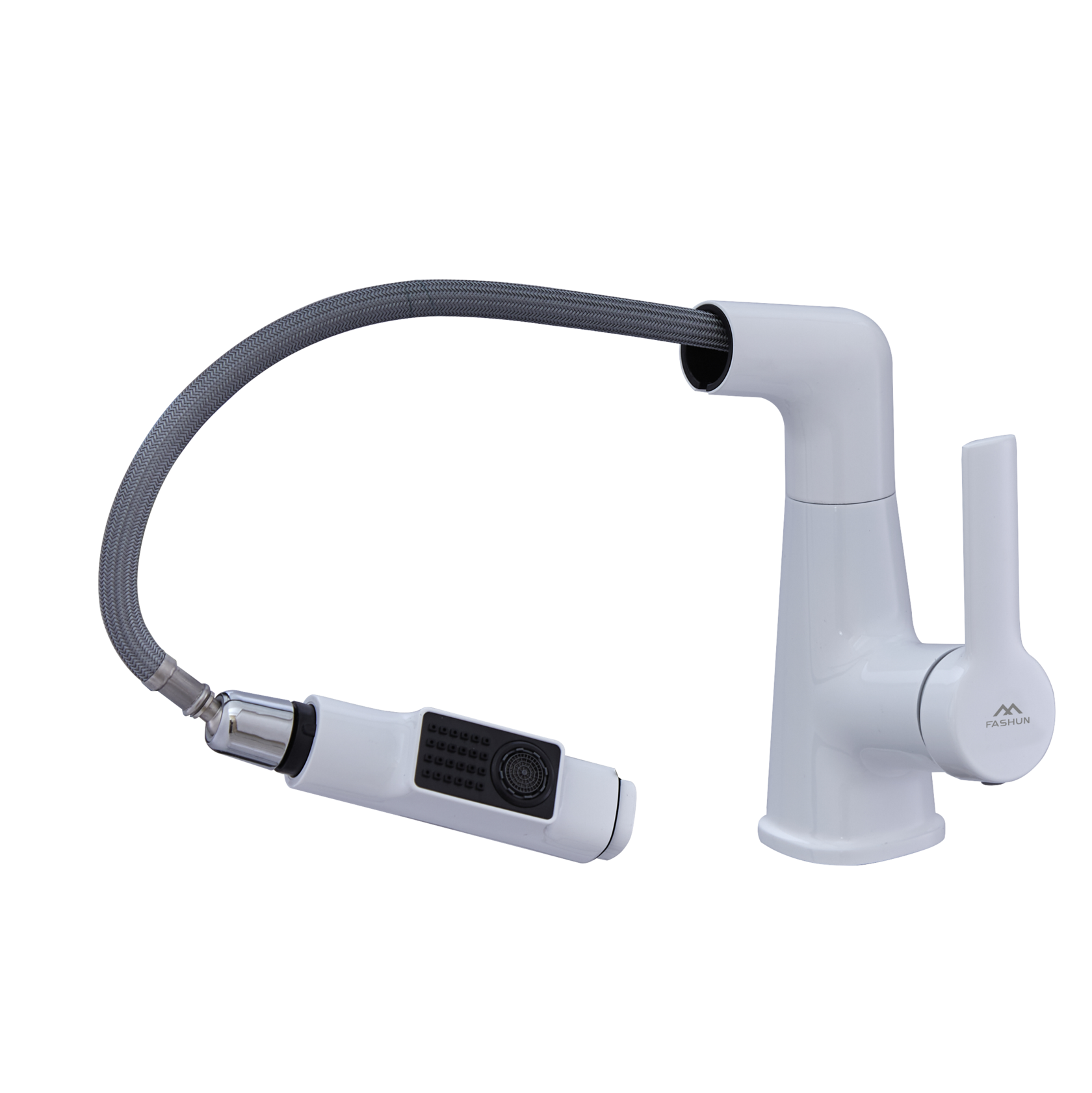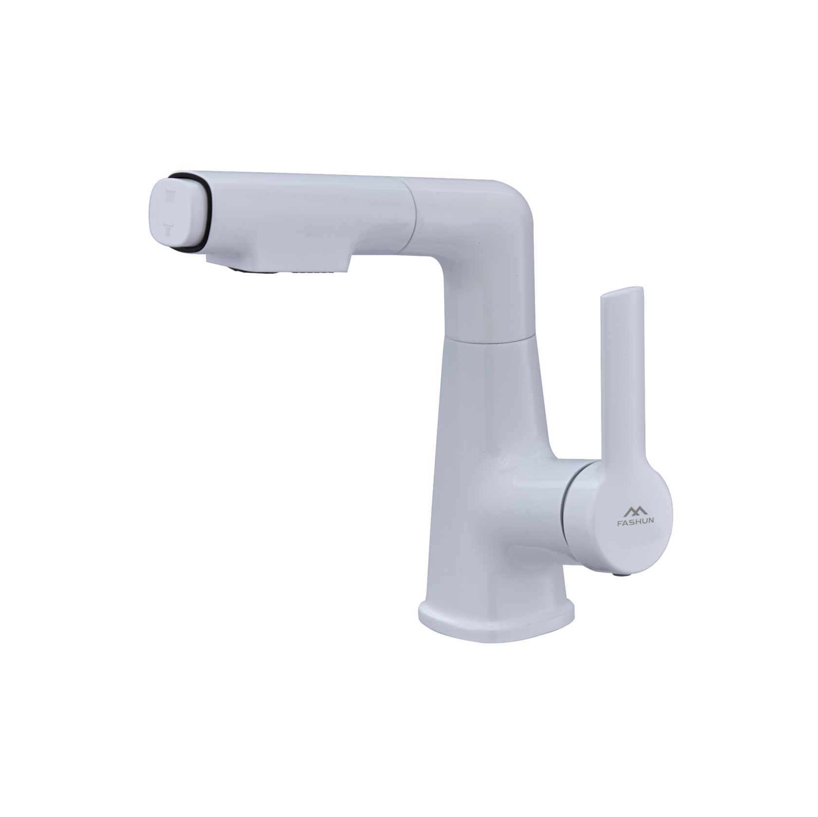 Смеситель для раковины Fashun с выдвижным изливом белый (A4018-8)
