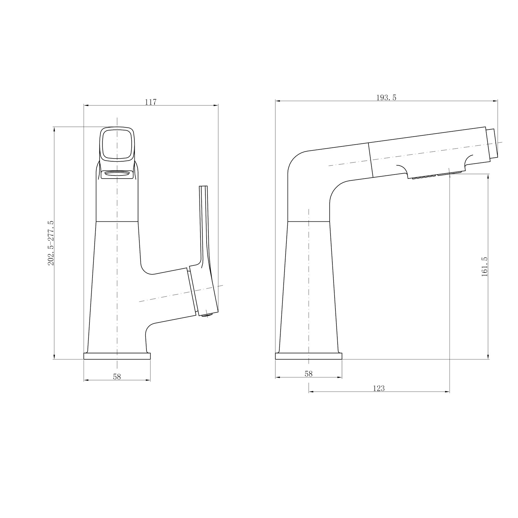смеситель для умывальника/мойки с изменяемой высотой излива и выдвижной лейкой, H=203-278 мм