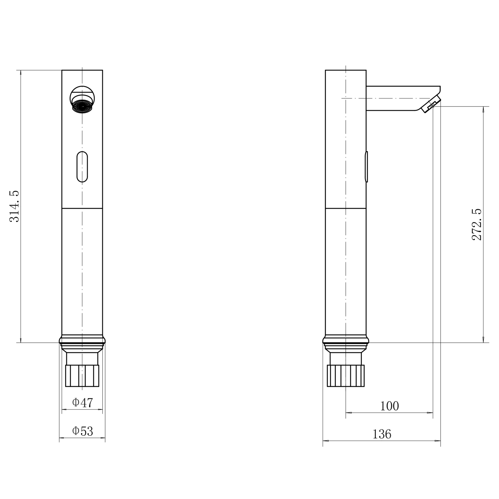 смеситель для умывальника высокий сенсорный, H=314 мм
