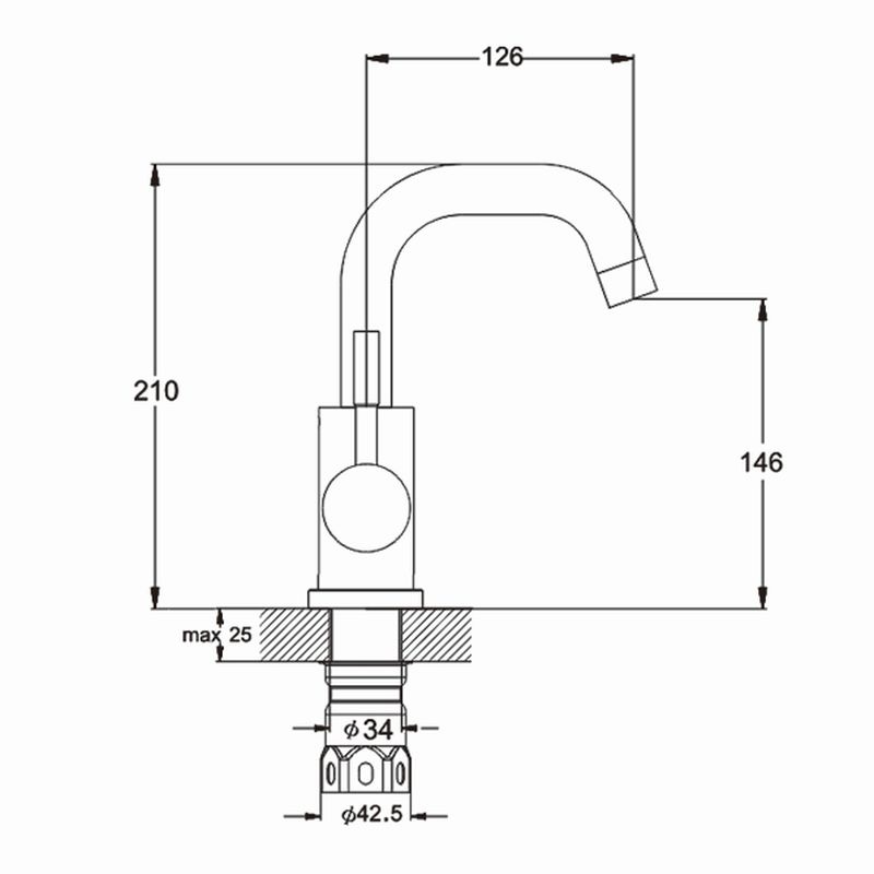 - Поворотный излив J-формы с вращением на 360 градусов.