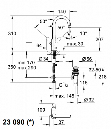 Смесители для раковины "BauCurve" (хром, гибкая подводка, донный клапан)