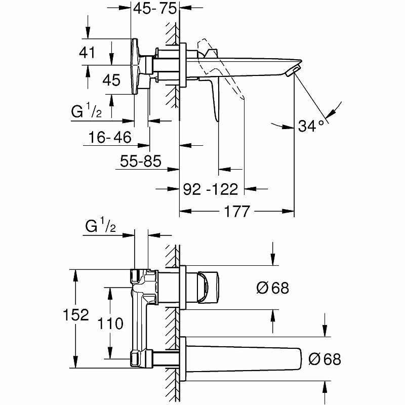 Смеситель для раковины Grohe BauEdge внешняя и внутренняя части хром (20474001)