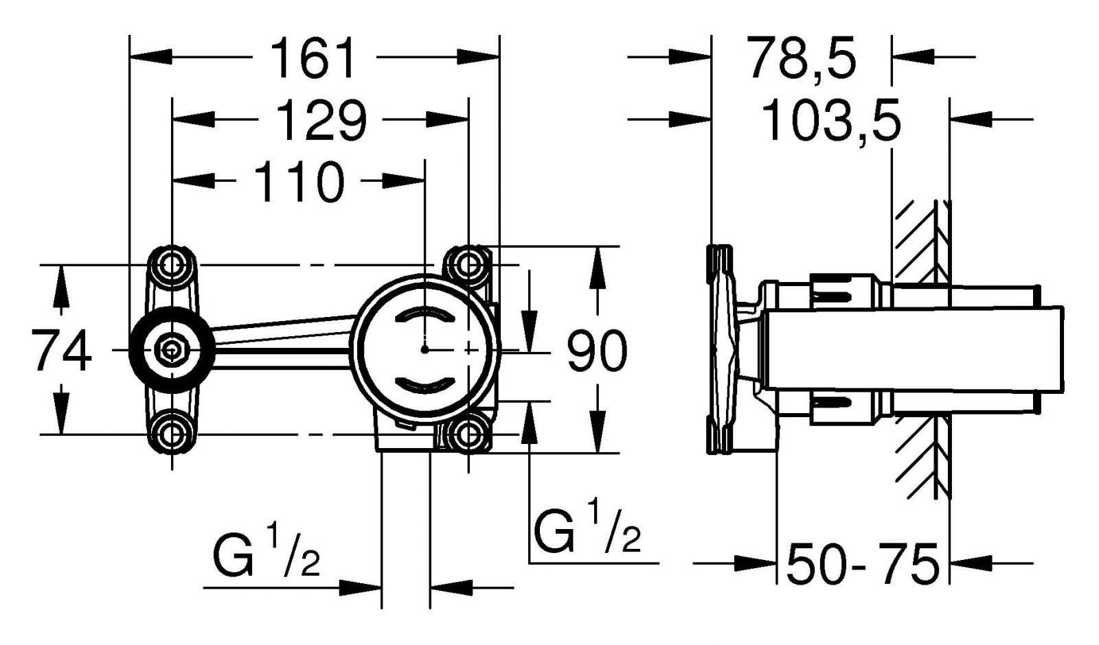 Для смесителя на 2 отверстия, с картриджем Joystick для скрытого монтажа, без комплекта верхней монтажной части, GROHE SilkMove® Joystick cartridge шаблон для монтажа, минимальное давление 1,0 бар.