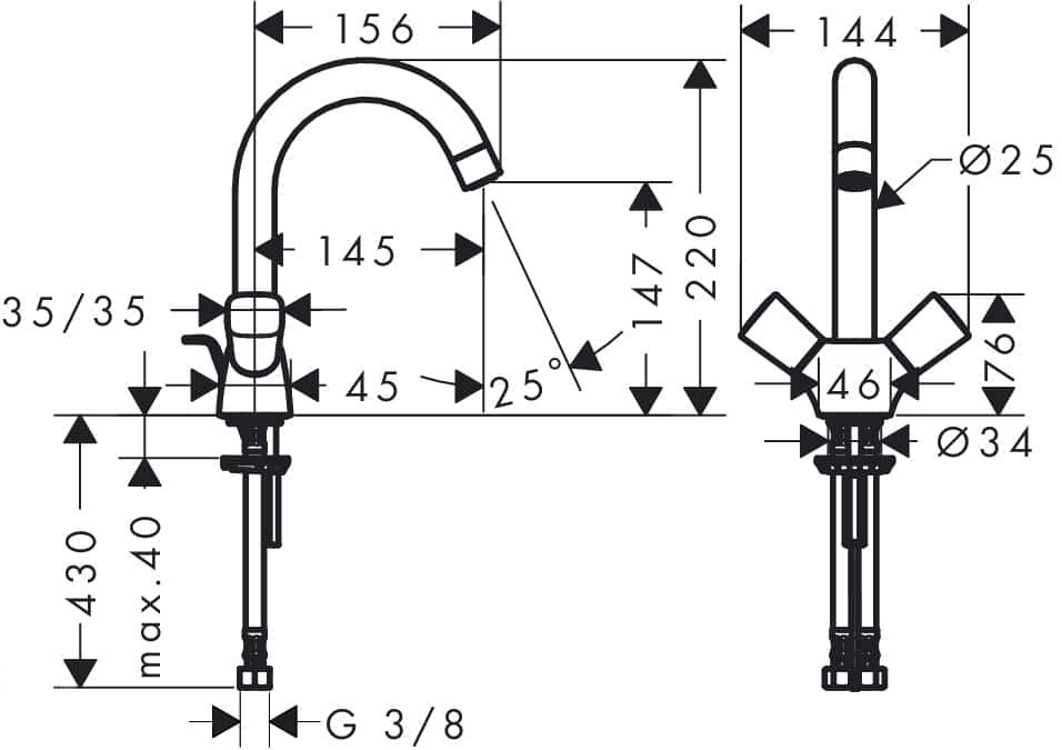 Двухвентильный смеситель современного дизайна можно установить на раковину любого типа или столешницу. Изделие имеет отметку ComfortZone. Это означает, что пользоваться им чрезвычайно удобно. Расстояние между краном и раковиной равно 15 см – можно с комфортом умыться, почистить зубы и наполнить водой большую емкость. Изделие прослужит в течение долгого времени, ведь оно изготовлено из прочного металла – латуни, а его поверхность хромирована. Устройство подходит для проточных водонагревателей. Комплектуется сливной арматурой со стержнем тяги.