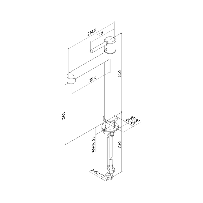 Подключение - Гибкая подводка из нетоксичной EPDM резины в оплетке из нержавеющей стали, М10 - 1/2, длина 350 мм