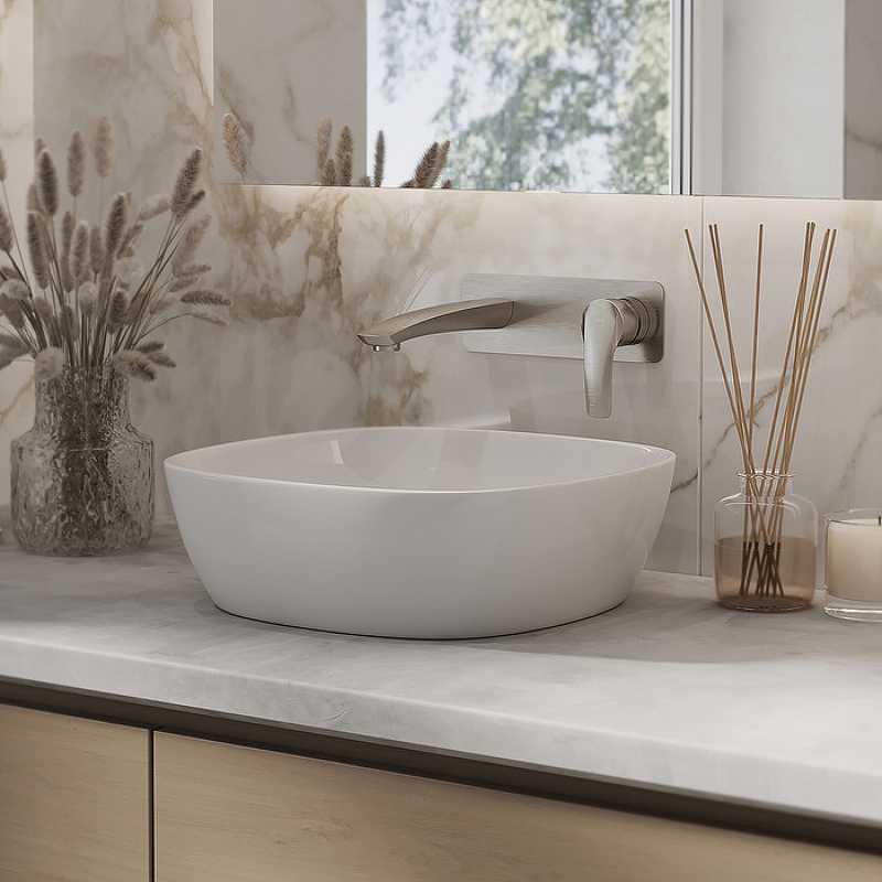 Встраиваемый смеситель для умывальника, однозахватный, латунь, сатин, керамический картридж Softap 35 мм, длина излива 163, регулируемый силиконовый аэратор. В комплекте: внутренняя часть, излив, ручка, отражатель. Упаковка: картонная коробка, инд. мешок.
