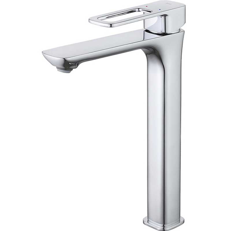 Смеситель для настольного умывальника, однозахватный, латунь, никель-хромовое покрытие, силиконовый аэратор Neoperl. С отверстием в ручке, на пьедестале. Керамический картридж 25 мм. Упаковка: картонная коробка, инд. мешок.