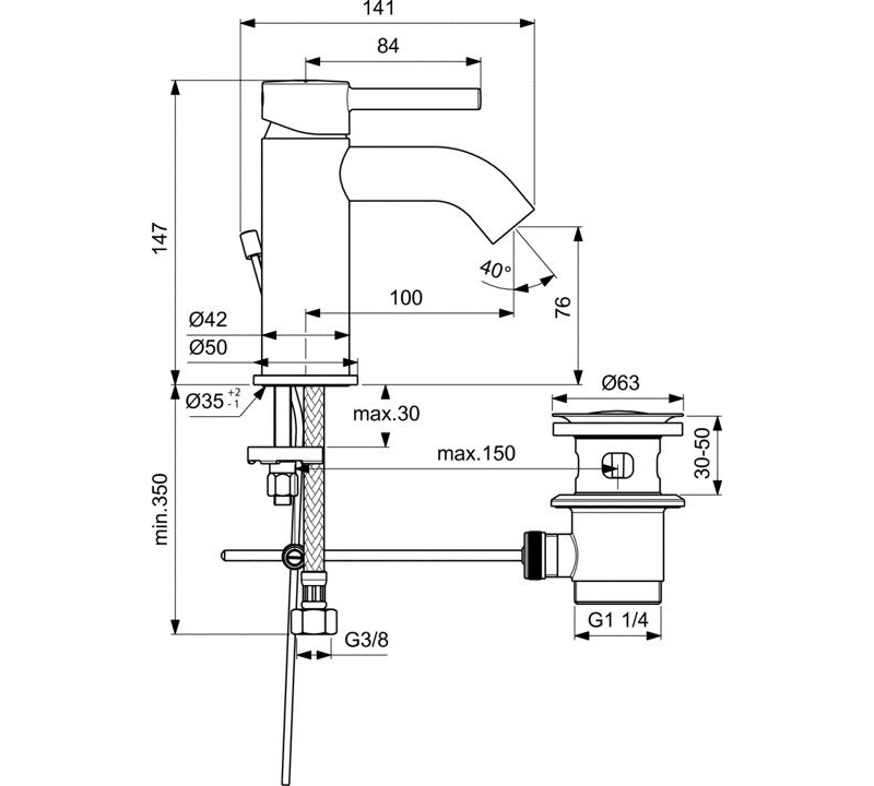 Состав поставки: смеситель, крепления, аэратор, гибкая подводка