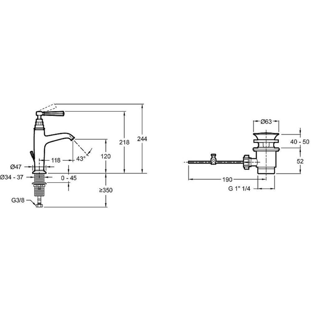 Смеситель для раковины Jacob Delafon Cleo 1889 с донным клапаном золотой (E24307-BGG)