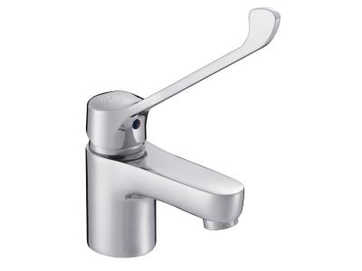 Такой смеситель устанавливается в медицинских учреждениях, где по требованиям должен быть установлен смеситель с некистевым управлением. Он также будет удобен для людей с ограниченными возможностями. Удлинённая рукоятка позволяет регулировать воду при помощи локтя.