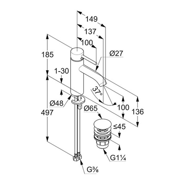 Смеситель для раковины Kludi Bozz черный (382883976)