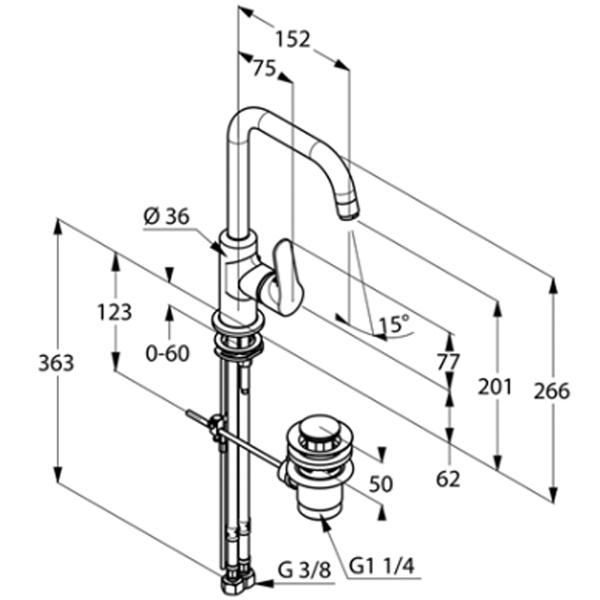 Смеситель для раковины Kludi Objekta хром, донный клапан (320230575)