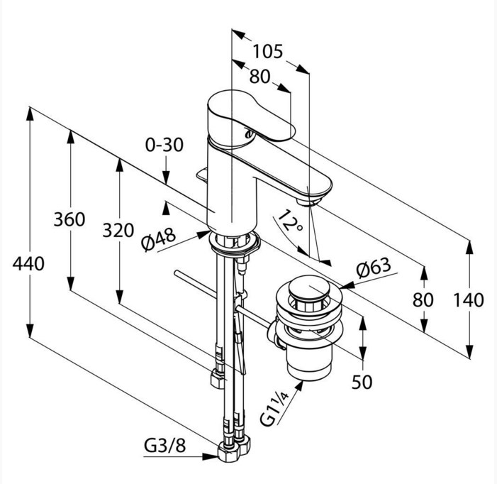 Смеситель для раковины Kludi Objekta хром, донный клапан (322340575)