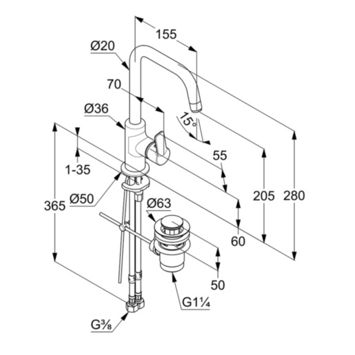Смеситель для раковины Kludi Pure&Easy хром, донный клапан (370230565)