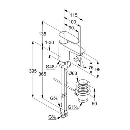 Смеситель для раковины Kludi Pure&Solid хром, донный клапан (342760575)