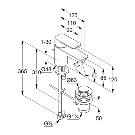 Смеситель для раковины Kludi Pure&Style хром, донный клапан (403850575)