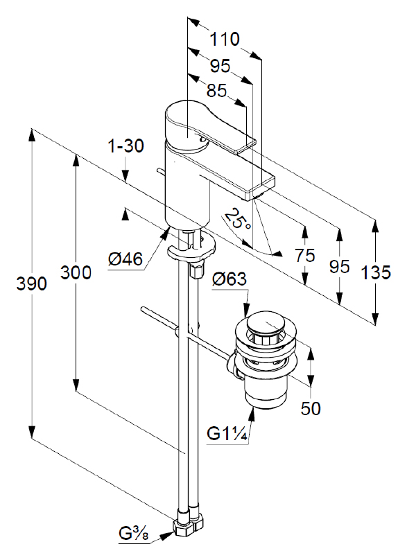 Смеситель для раковины Kludi Zenta SL хром, донный клапан (482630565)