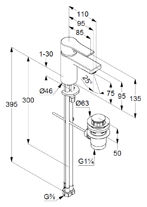 Смеситель для раковины Kludi Zenta SL хром, донный клапан (482770565)