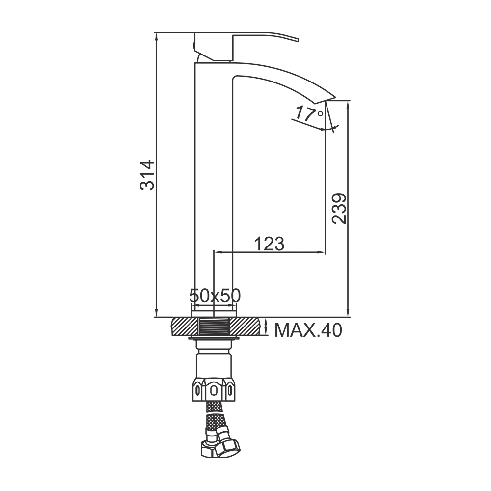 Состав поставки: смеситель, гибкая подводка