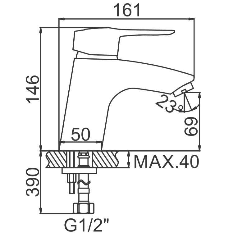 Смеситель однорычажный, монолитный, устанавливается на умывальник со стандартным отверстием под смеситель, в комплекте прилагается подводка.