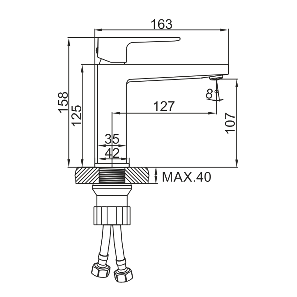 Состав поставки: смеситель, гибкая подводка