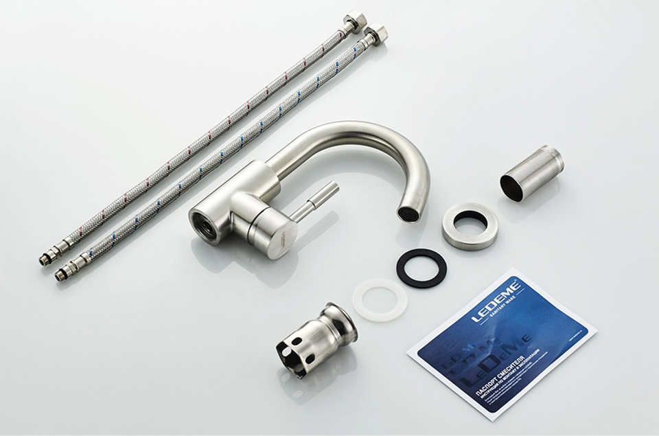 Смеситель для умывальника LEDEME L1098-3 в коллекции смесителей из нержавеющей стали с хромовым покрытием успешно сочетаются строгий лаконизм простых форм деталей.