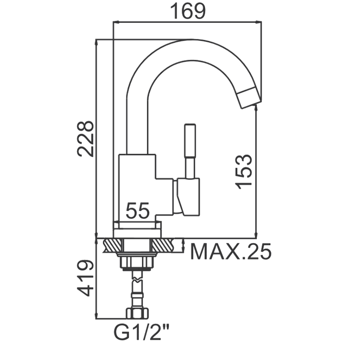 Удобная эргономичная ручка смесителя имеет форму, удобную для захвата ладонью и значительные размеры, что позволяет уменьшить усилия, необходимые для изменения температуры и напора воды.