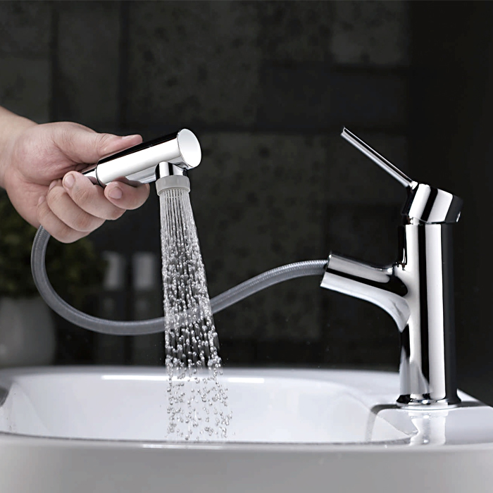 Смеситель для раковины Ledeme хром, с выдвижной лейкой (L1055-25)