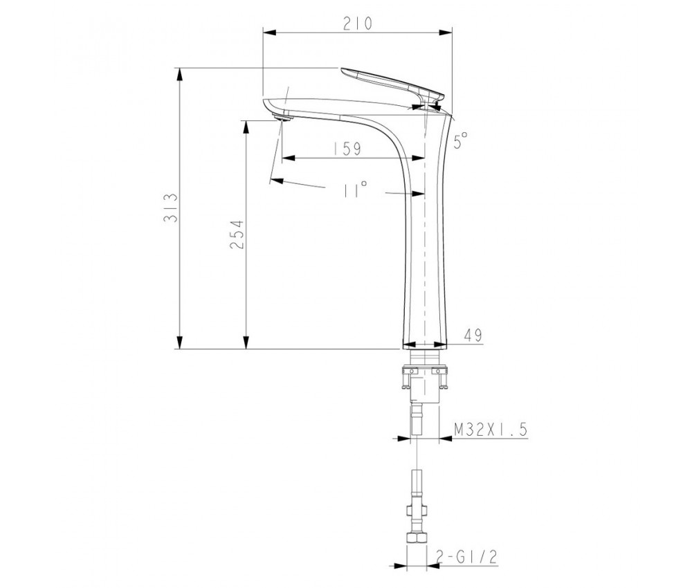 - Модель комплектуется гибкой подводкой 1/2" длиной 60 см.