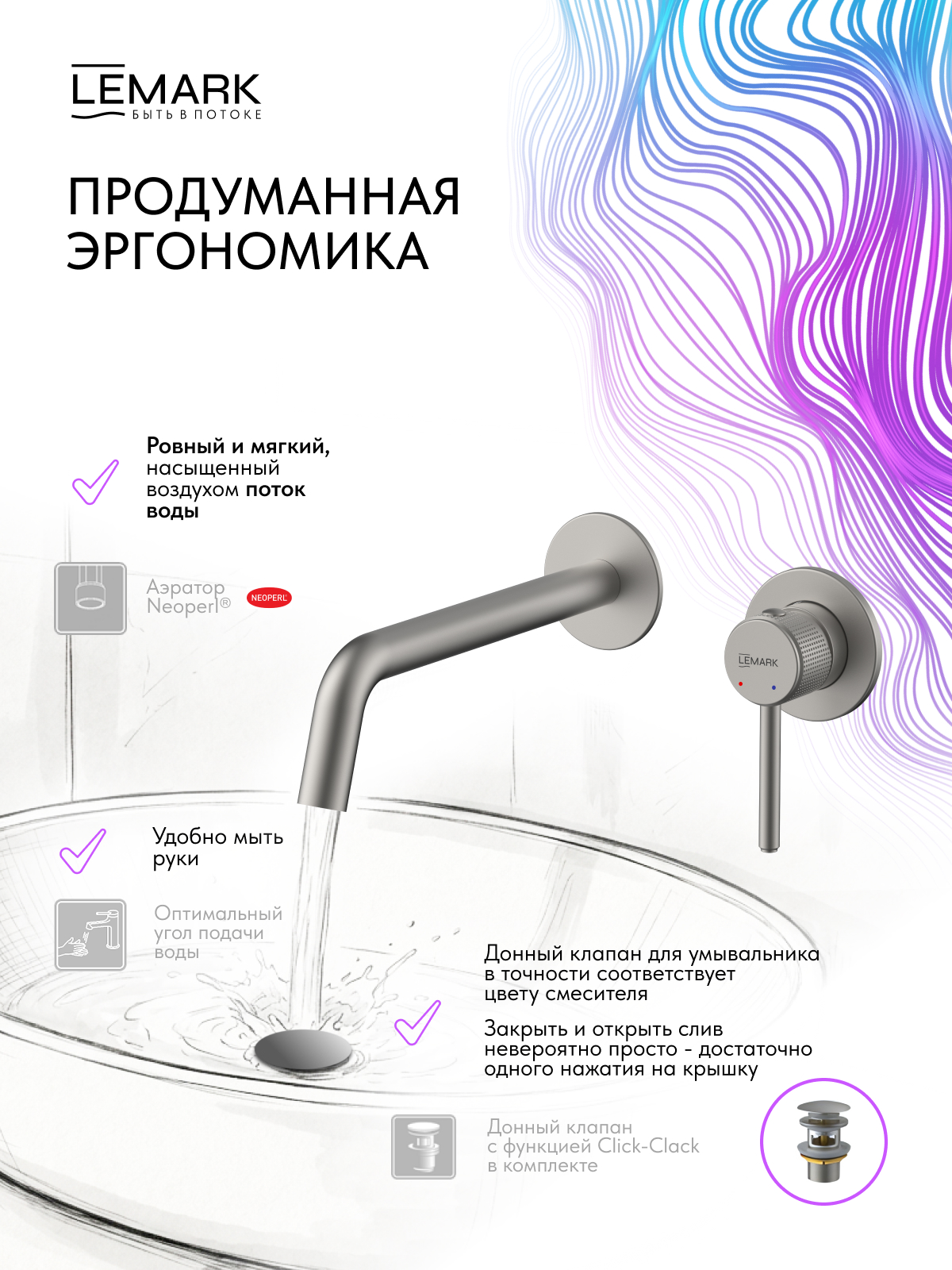 Смеситель для раковины Lemark Beluga встраиваемый хром (LMF-8033B-BN)