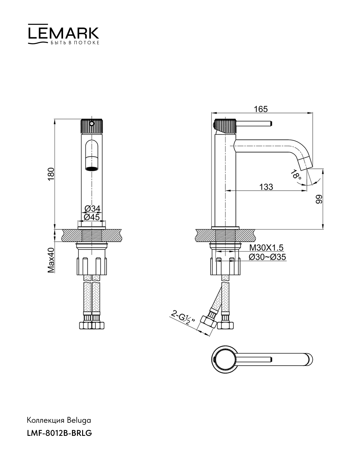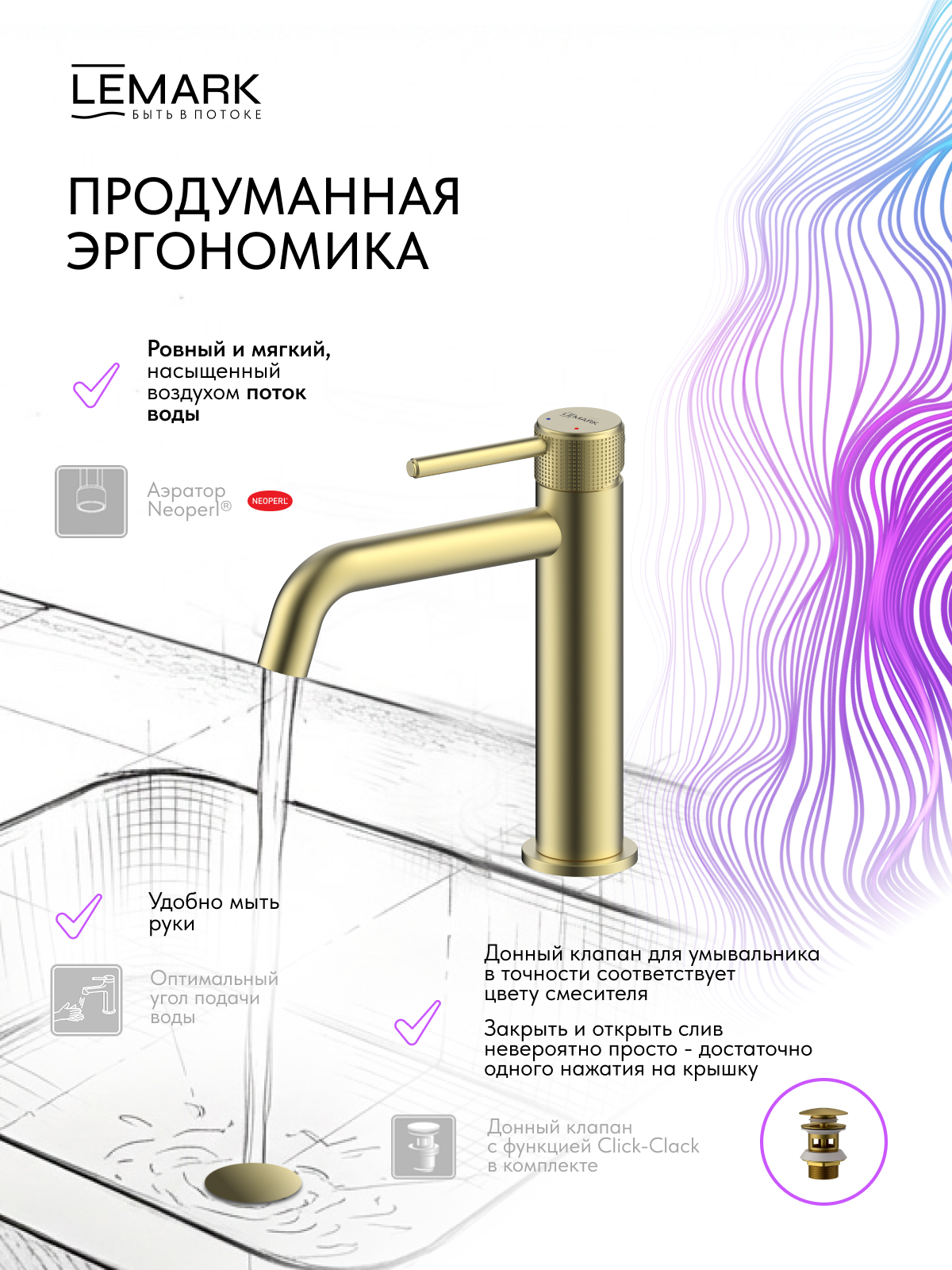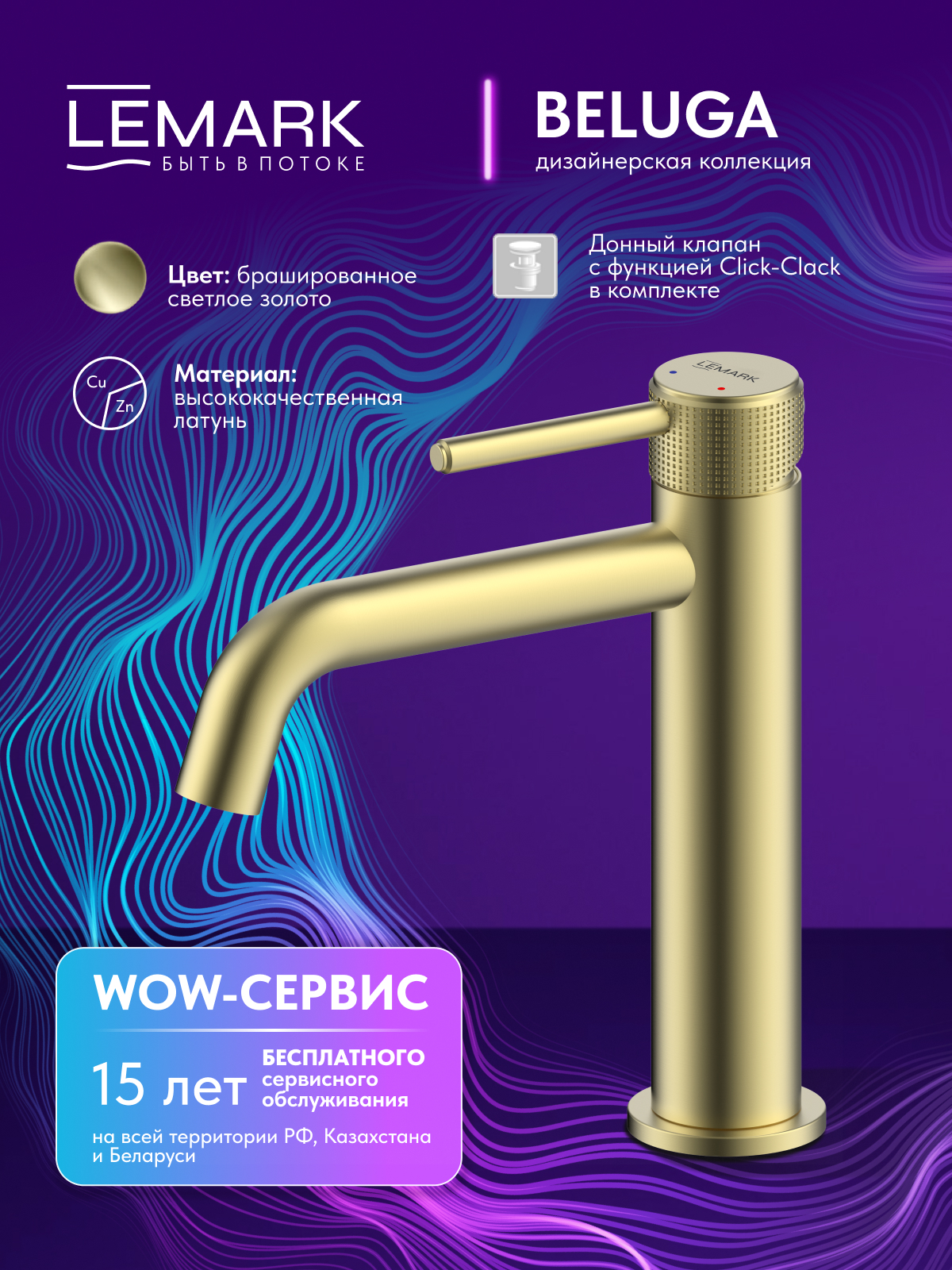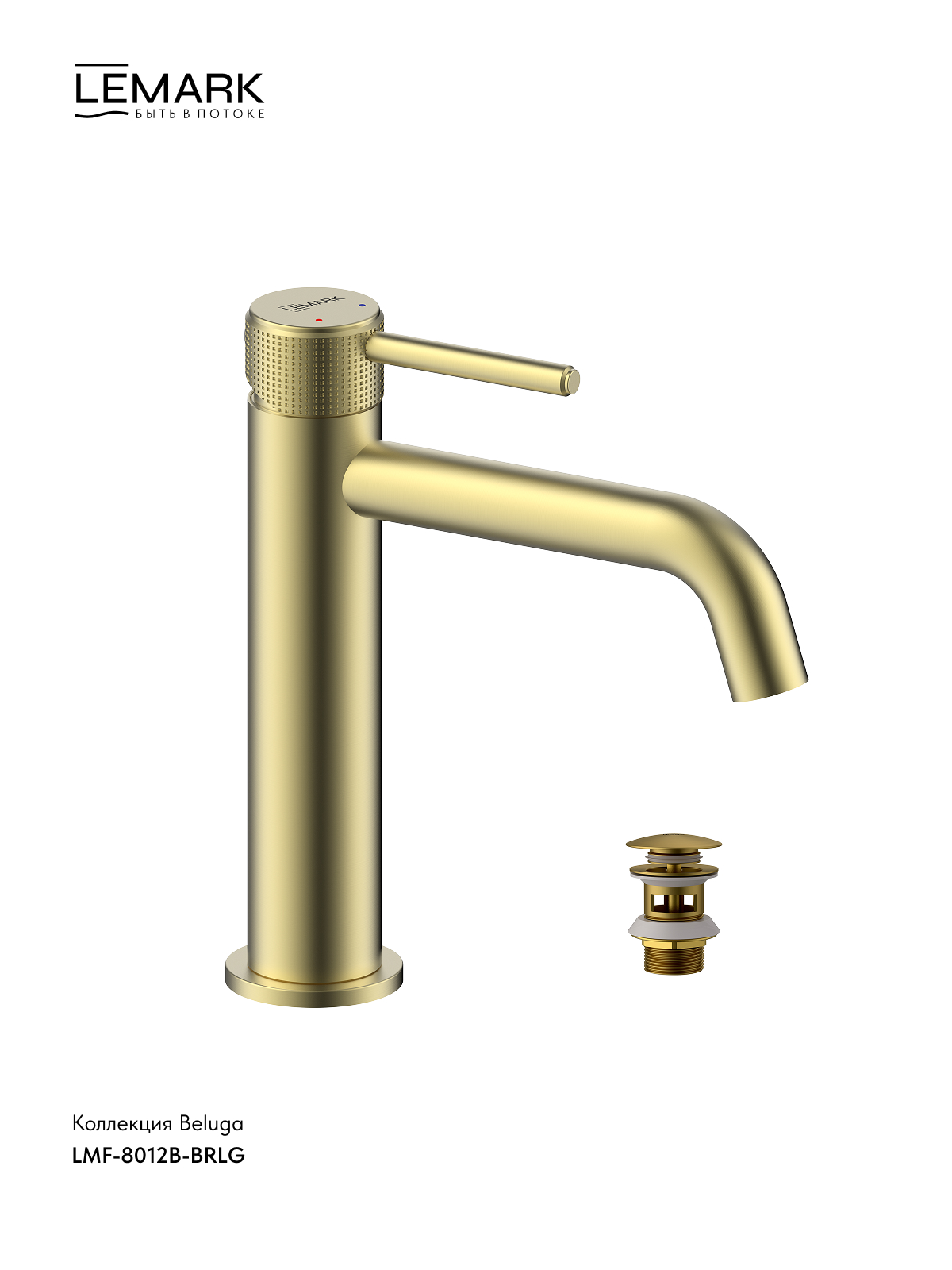 Смеситель для раковины Lemark Beluga золотой (LMF-8012B-BRLG)