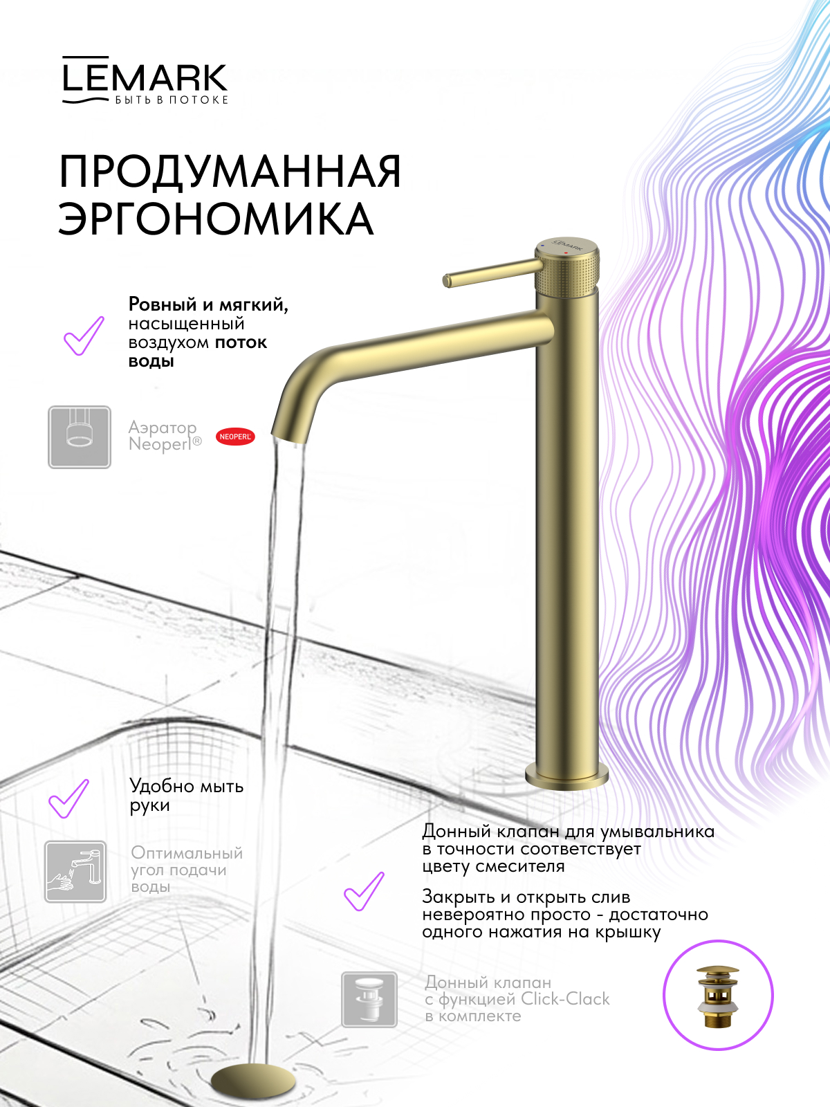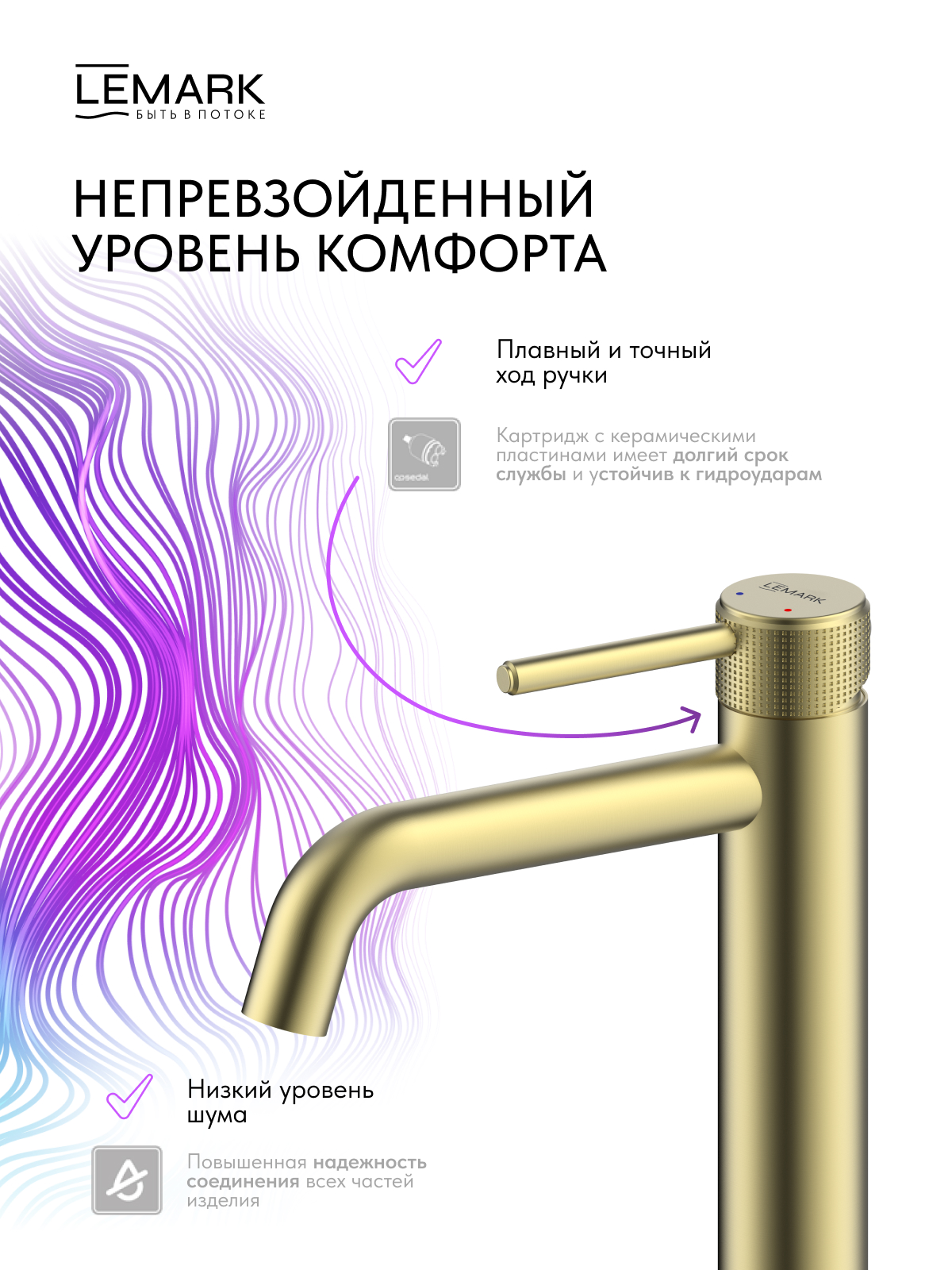 Смеситель для раковины Lemark Beluga золотой (LMF-8015B-BRLG)