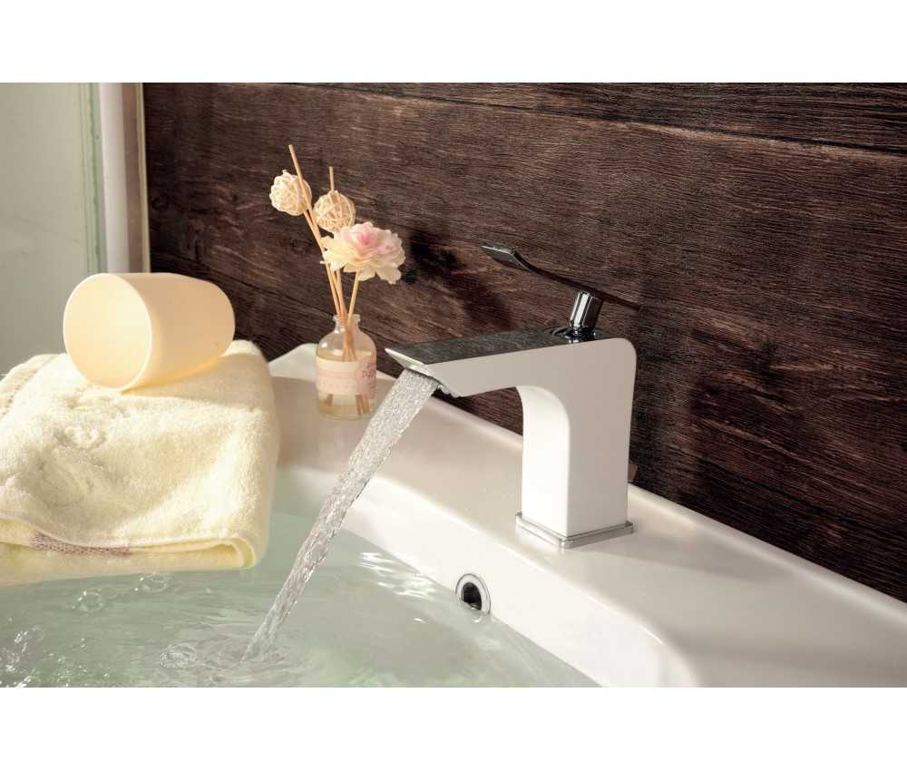 - Квадратный смеситель Contest LM 5806CW в бело-серебристом цвете станет прекрасным выбором для ванной комнаты в стиле хай-тек.