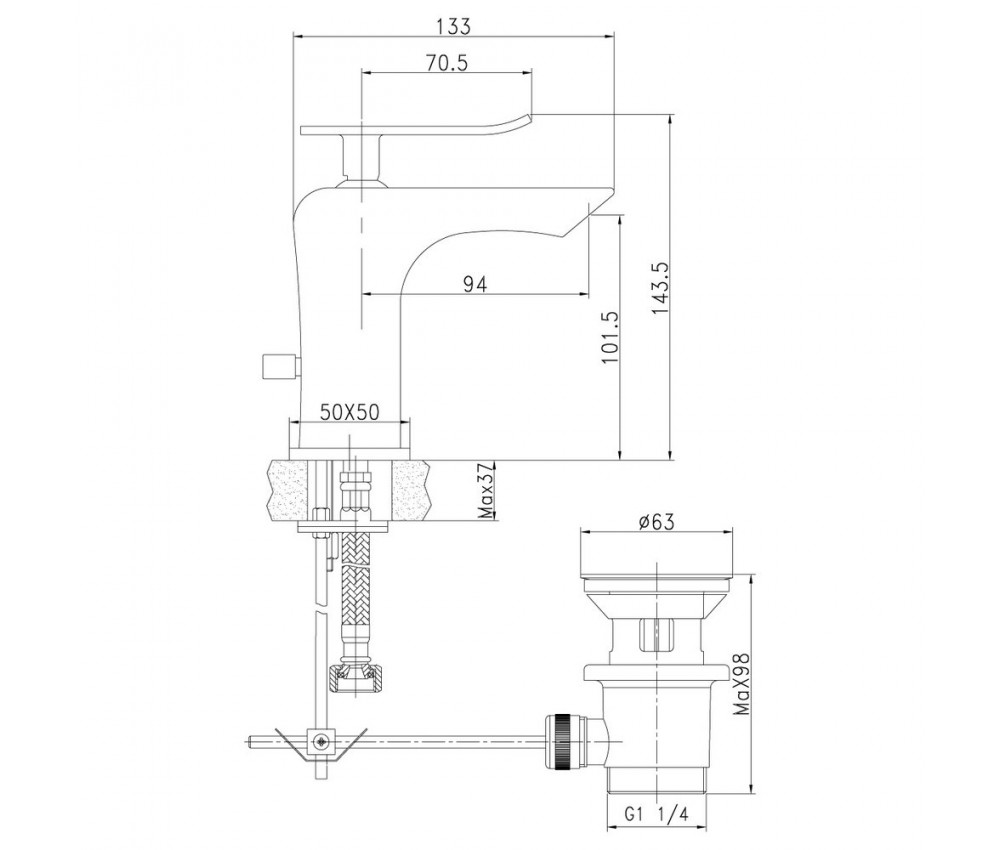 Состав поставки: смеситель, аэратор, гибкая подводка, донный клапан клик-клак