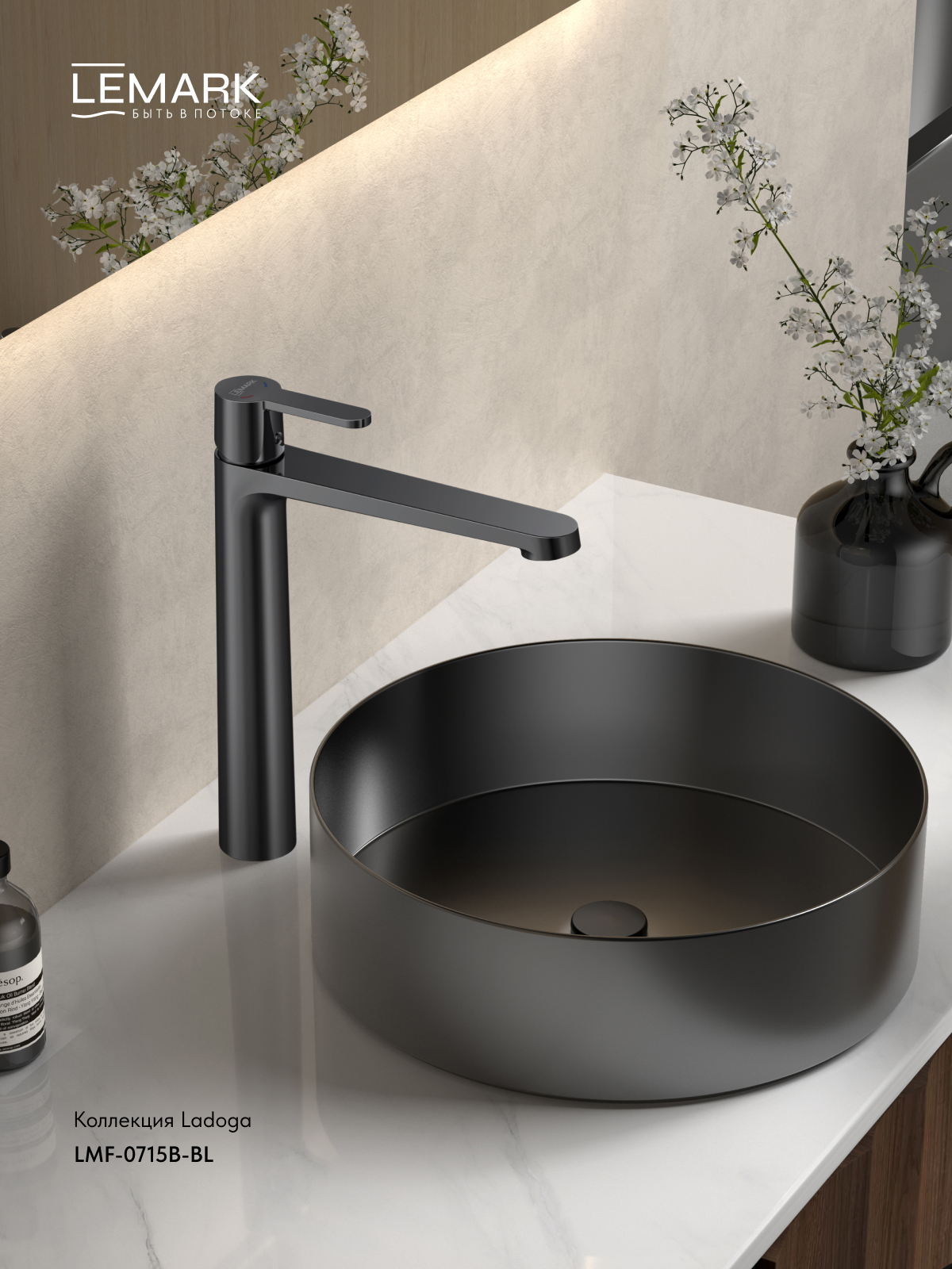 Смеситель для раковины Lemark Ladoga черный (LMF-0715B-BL)