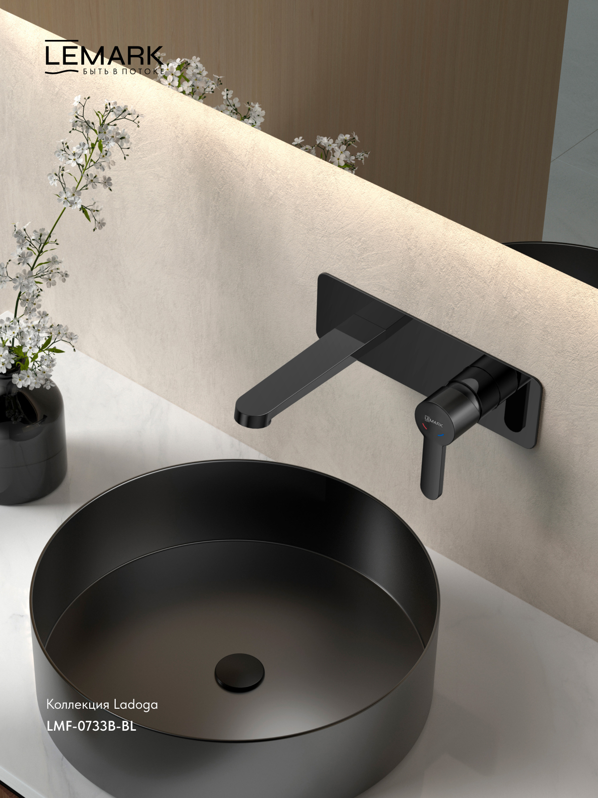 Смеситель для раковины Lemark Ladoga встраиваемый черный (LMF-0733B-BL)