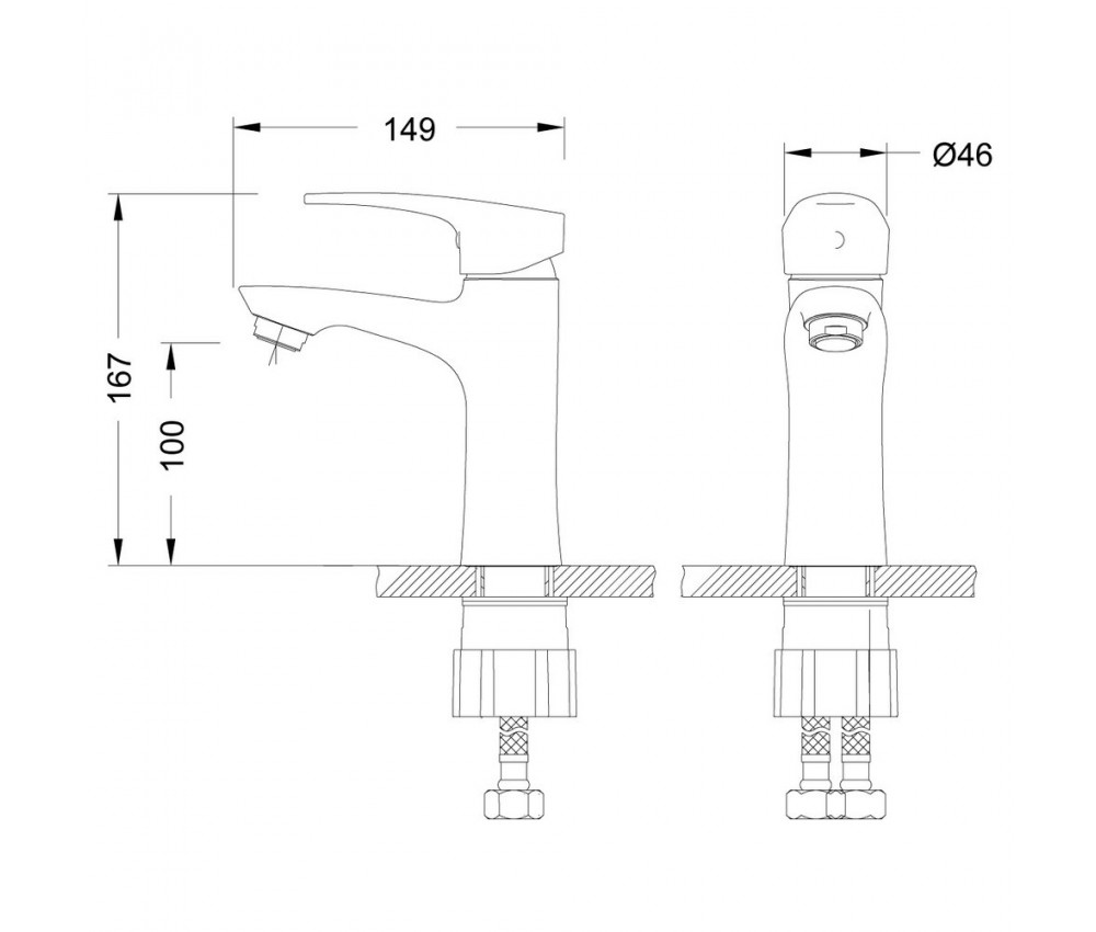 - Для подключения горячей и холодной воды изделие комплектуется гибкой подводкой 1/2" длиной 50 см.