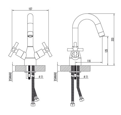 - Модель с керамической кран-буксой открывается легким движением руки. С помощью двух вентилей можно без труда отрегулировать температуру и напор воды.