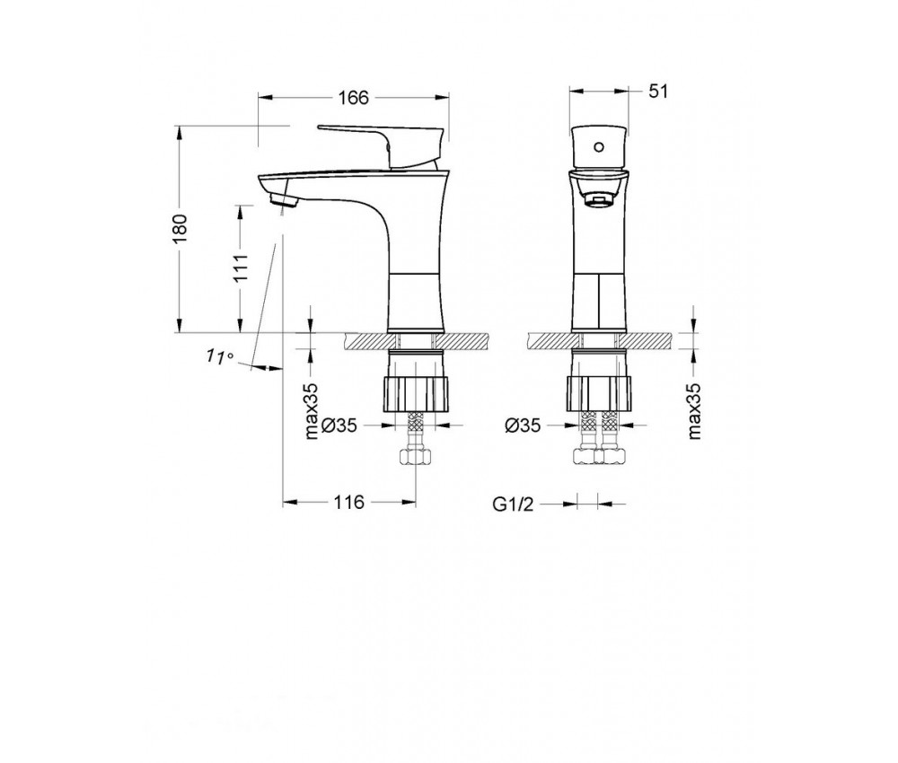 - Смешивание горячей и холодной воды в единый комфортный поток обеспечит керамический картридж диаметром 35 мм.