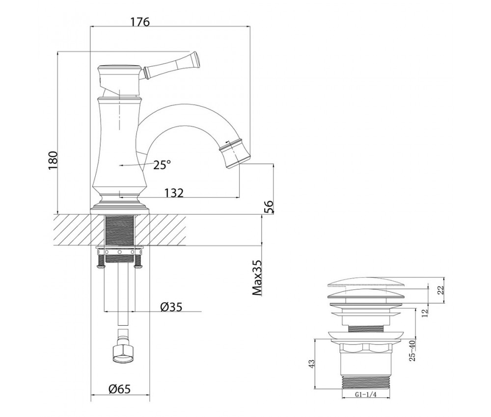 Состав поставки: смеситель, крепления, аэратор, гибкая подводка, донный клапан