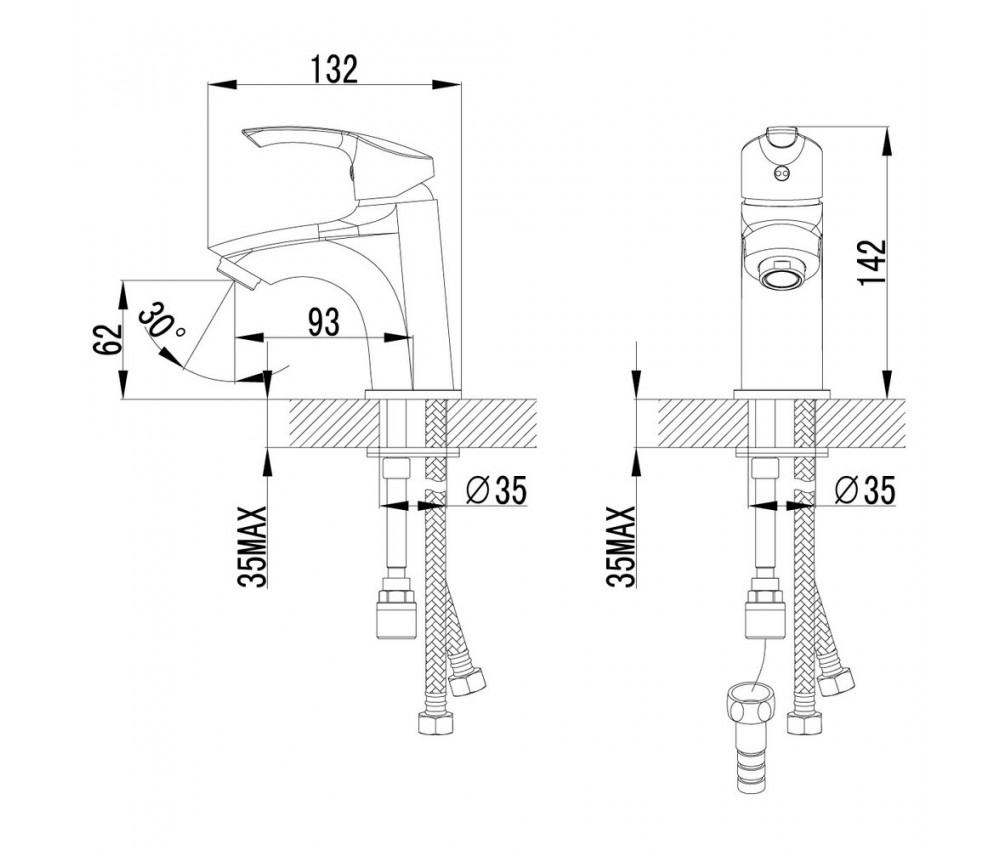 - Короткий фиксированный излив с аэратором обеспечивает мягкую и ровную струю, не допускающую нежелательного разбрызгивания и способствующую сокращению расхода воды.