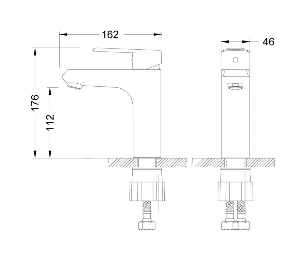 - Простое подключение смесителя к системе водоснабжения осуществляется при помощи гибкой подводки 1/2" (длина 50 см).