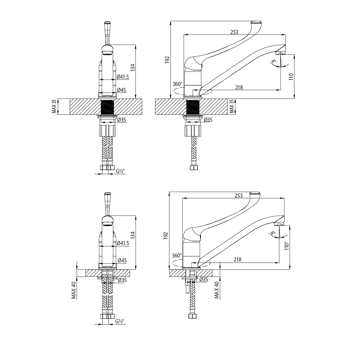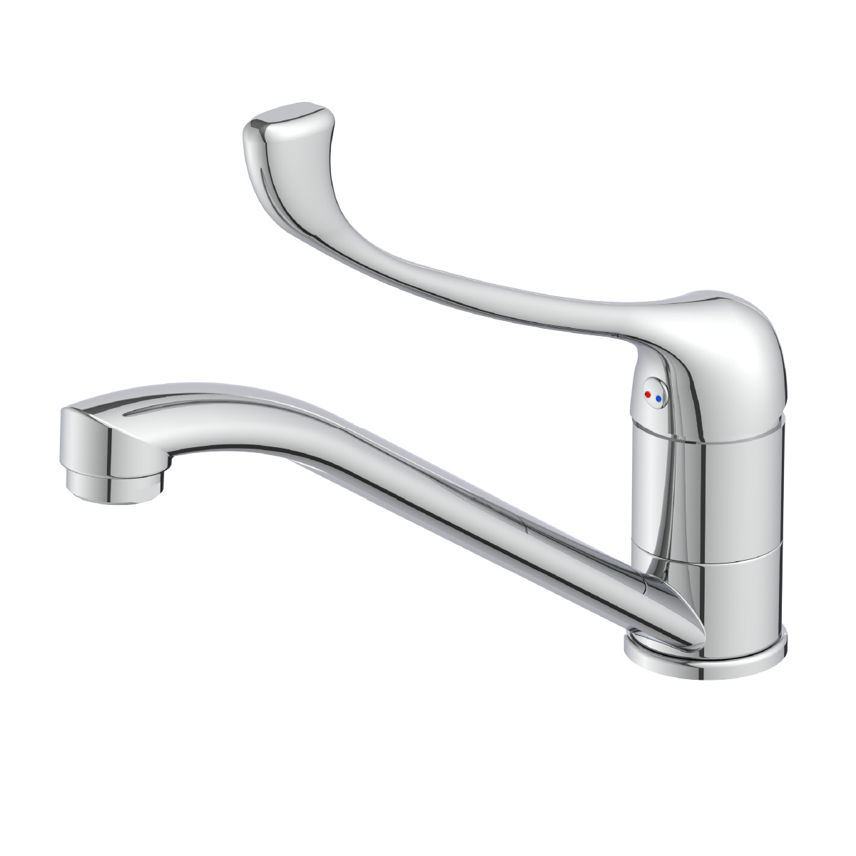 Смеситель для раковины/кухни с локтевой рукояткой, с поворотным изливом, высота излива 12 см, длина 21 см, латунь/хром