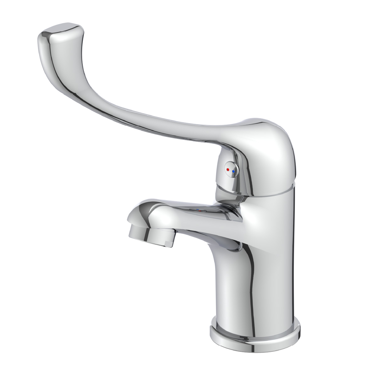 Смеситель для раковины с локтевой рукояткой, монолитный, высота излива 8 см, длина 9 см, латунь/хром