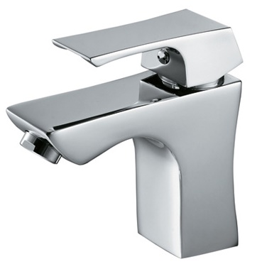 - Монолитная конструкция включает в себя латунный корпус с коротким изливом и металлический рычаг, расположенный сверху.