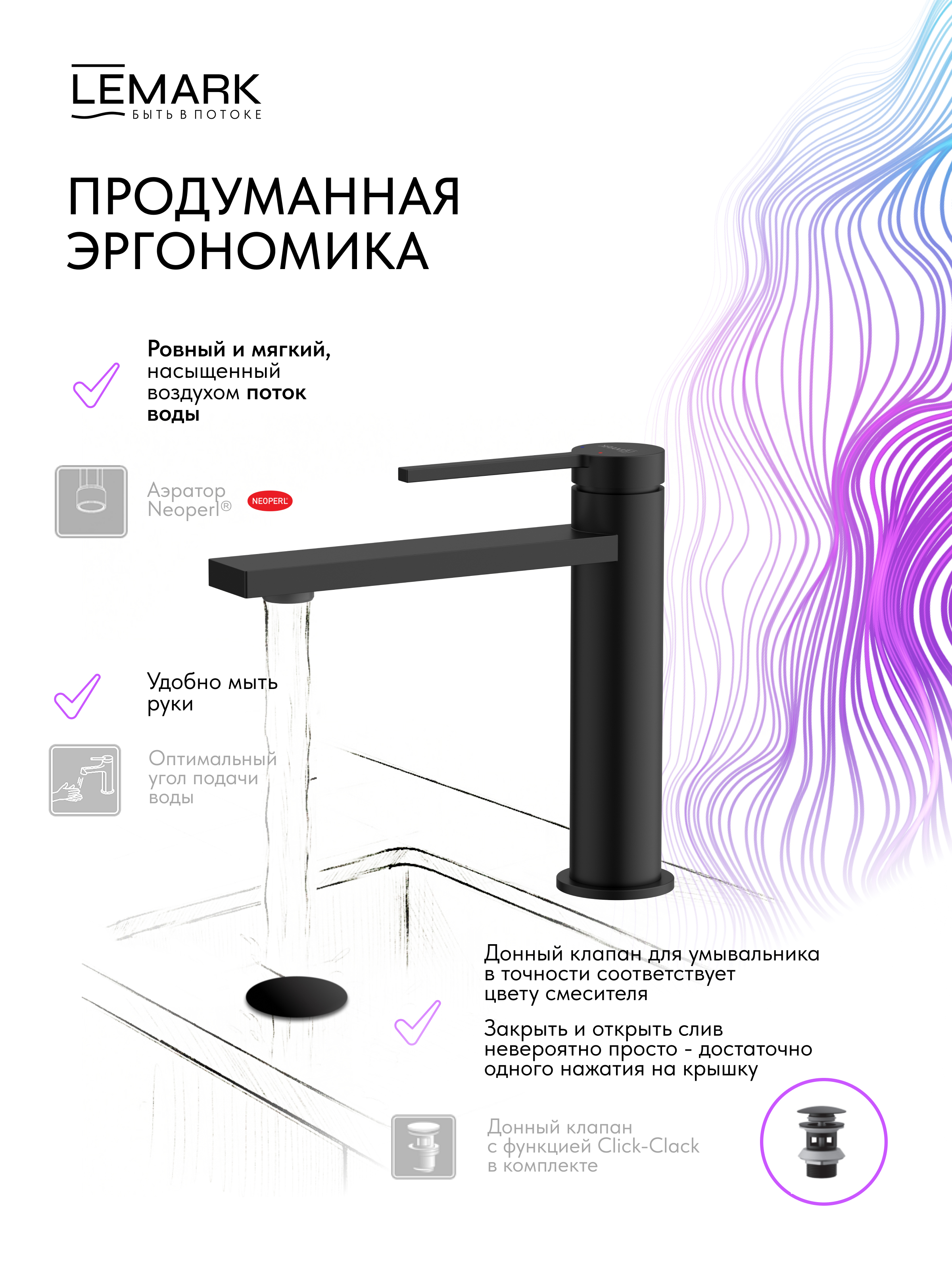 Смеситель для раковины Lemark Valday черный (LMF-8112B-BL)