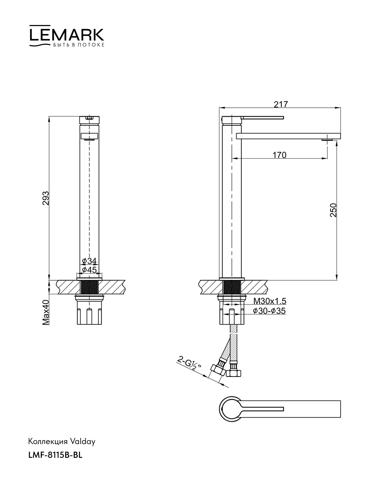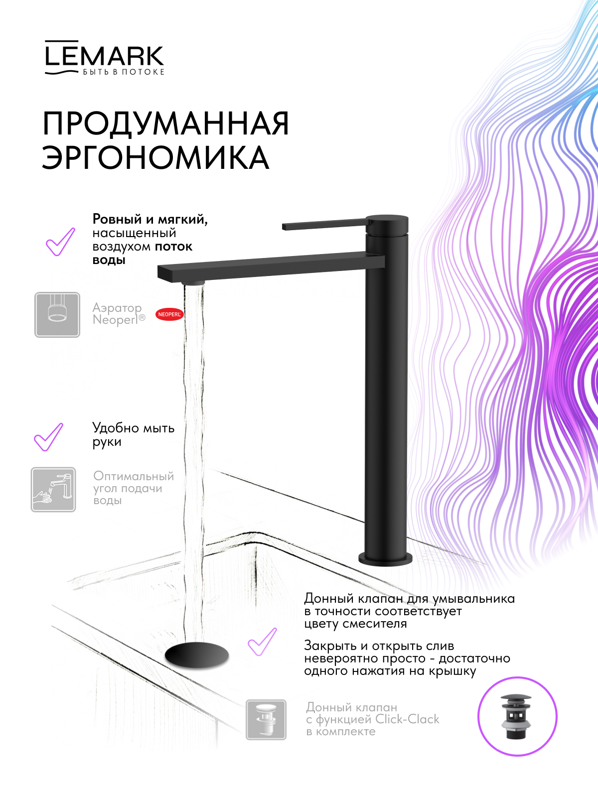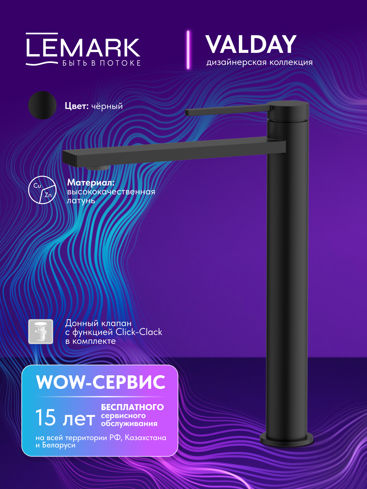 Смеситель для раковины Lemark Valday черный (LMF-8115B-BL)