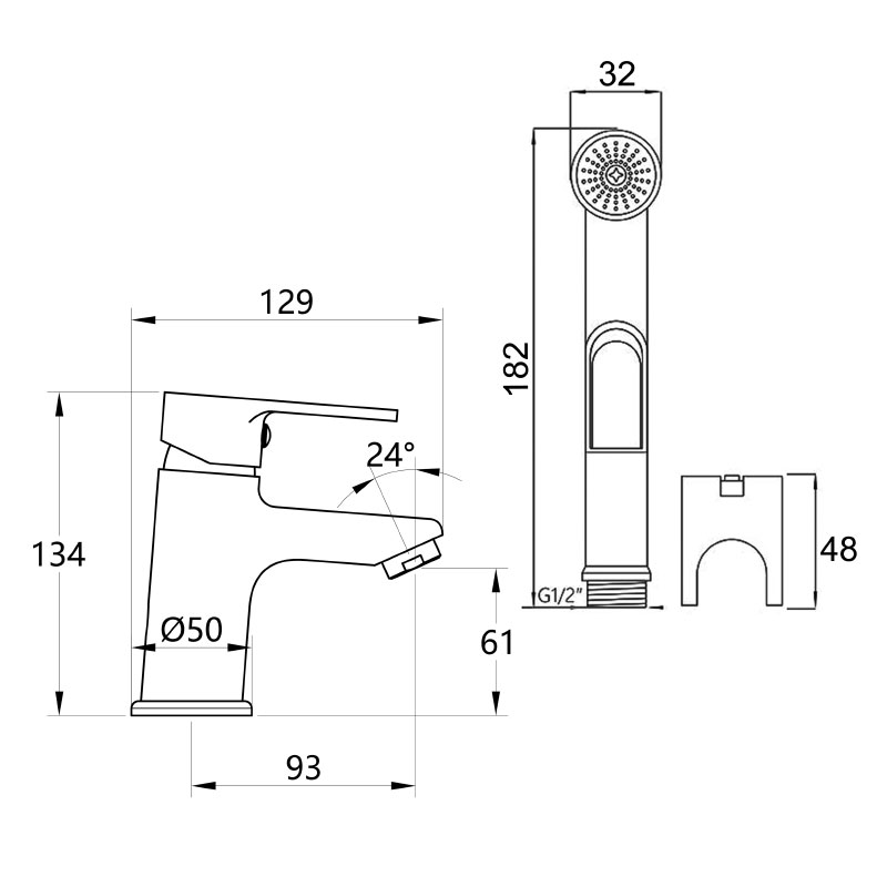 Корпус латунный с 3 отверстиями, металлическая ручка, картридж 35мм Mingdi с латунной гайкой, гигиеническая лейка+держатель+шланг в комплекте в цвет корпуса смесителя.